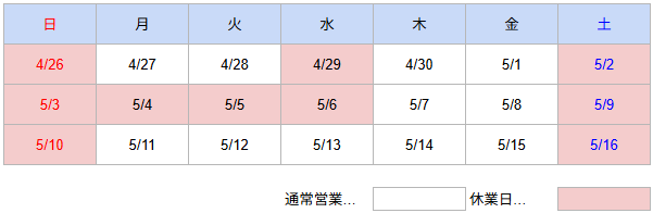 2026年ゴールデンウィーク期間中の営業日のご案内